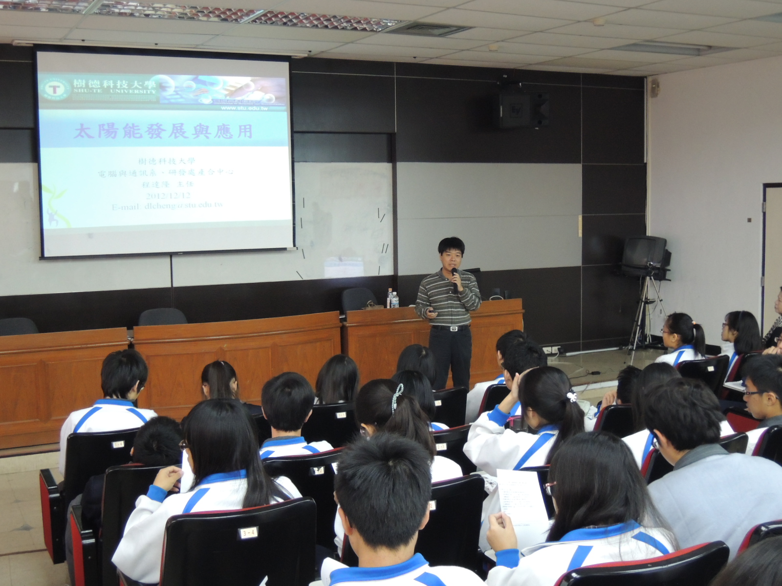 此次講座邀請到樹德科技大學電腦與通訊系程達隆教授以能源議題為主軸介紹太陽能光電的應用。