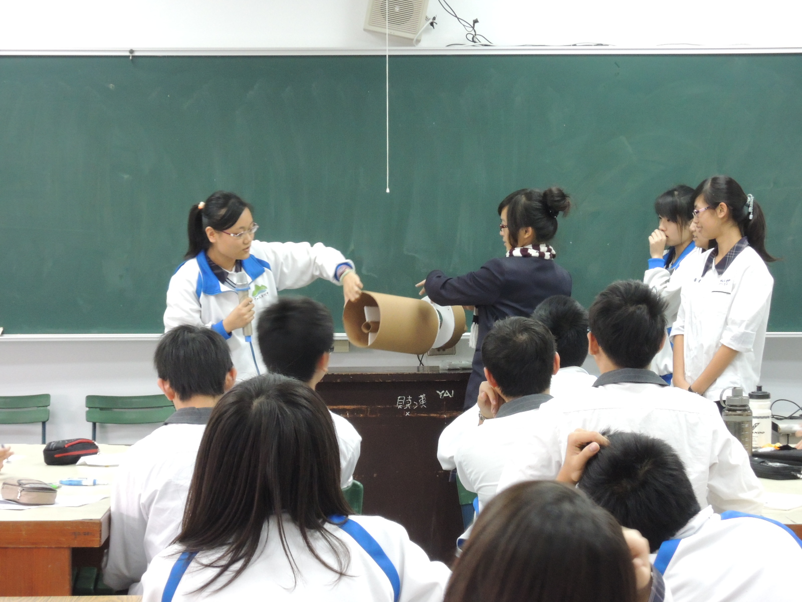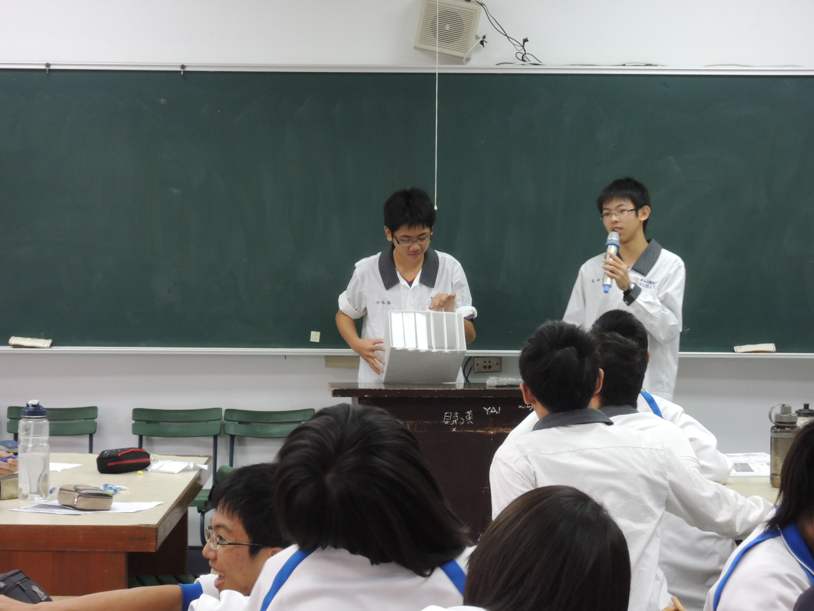 此次課程讓各組同學共同製作出綠能概念模型,並上台發表該組的作品。最後,由洪鈴雅老師協助進行創意組課程的回顧,讓同學到課程平台完成線上作業,並針對課程內容與同學互相討論與上台分享。