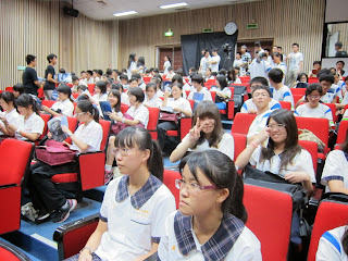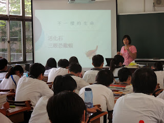 黃翠瑩老師介紹三眼恐龍蝦,並發放恐龍蝦飼育組,說明飼育方法後,讓學生帶回家飼育。下午由高瞻教師群帶領高一、高二的高瞻班學生,前往高雄中學參加高雄中學第三屆科學班成果發表會,讓學生透過觀摩他人成果與互相交流,能對專題研究有更進一步的認識,藉此學習他人長處,讓自己更進一步。