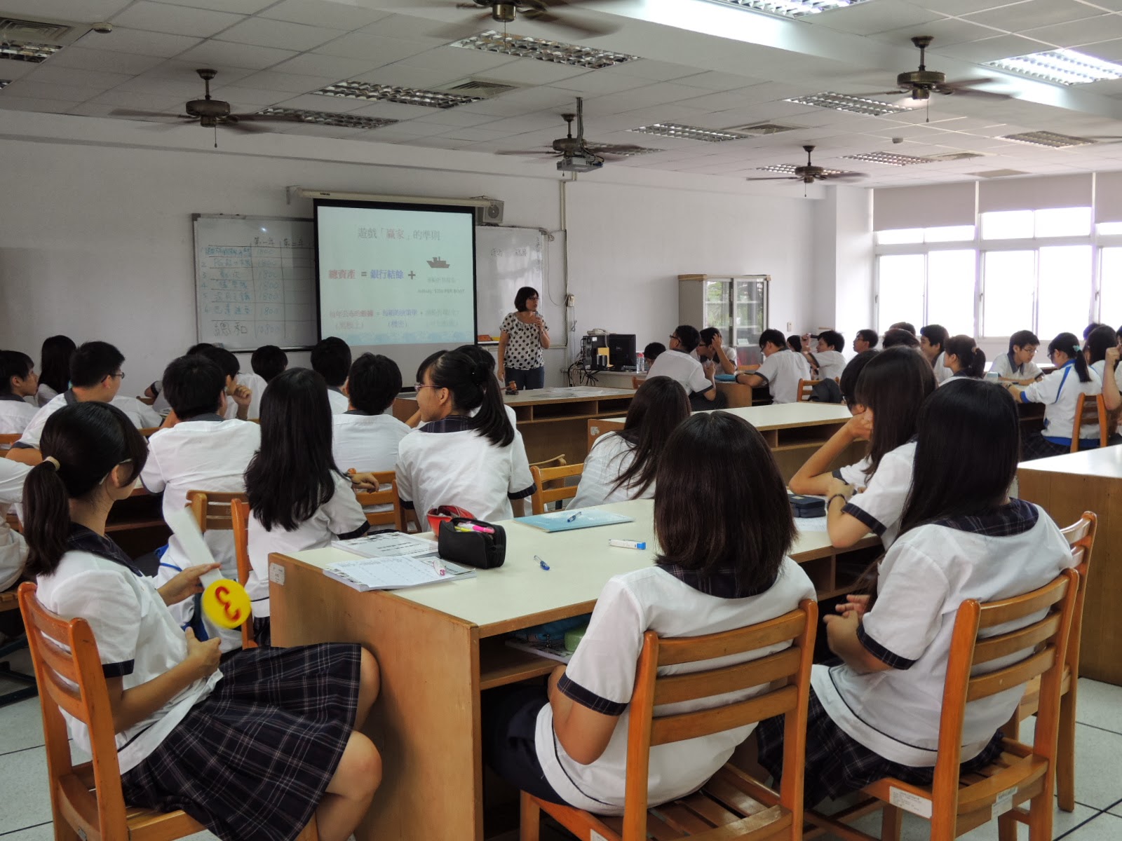 此次課程由臺灣海洋環境教育推廣協會的洪鈴雅講師與黃翠瑩老師、廖純姿老師共同帶領學生進行「FishBanks海洋漁獲爭霸戰」遊戲課程。各組同學在經營船公司的過程中經歷了船隻買賣獲利、漁獲量變動以及共同協商等歷程。課程結束後,由教師群共同進行課後回饋,解說遊戲結果、讓學生上台分享經營策略與遊戲感想,同時配合影片放映,引導學生瞭解海洋環境資源與發展的問題,探討如何保護現有的海洋資源?藉此加深同學保護海洋資源的意念,以期達到永續環境的課程目的。