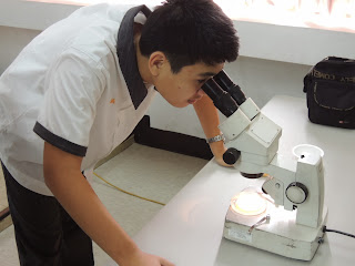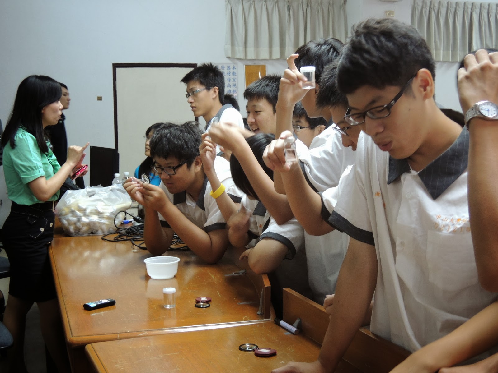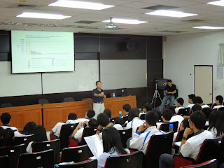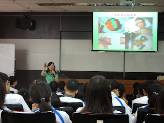 高雄市疾病管制局的何惠彬股長以登革熱實例說明何謂登革熱與該疾病的傳染途徑與症狀以及登革熱的防治方法,演講過程中透過有獎徵答方式鼓勵同學回答問題,同時帶來了孑孓卵條、劍水蚤等,讓學生能實際觀察,藉此加強學生記憶。