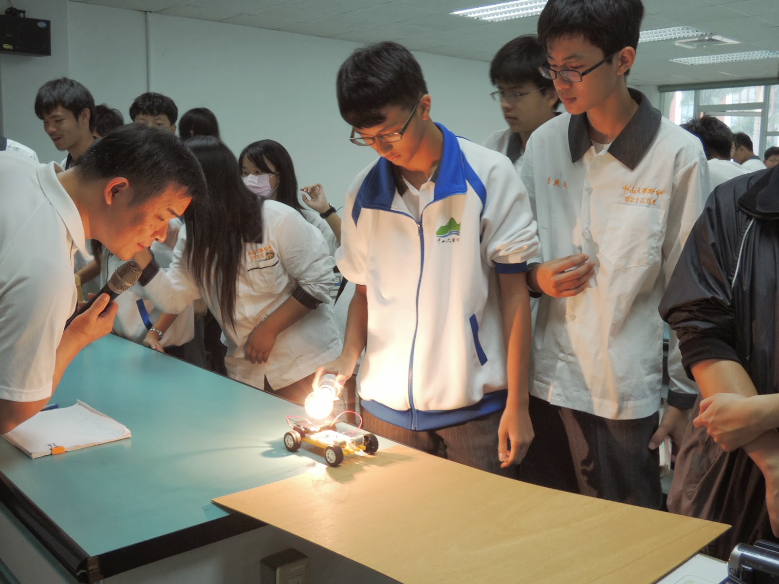 王德治老師說明光科技雙電力綠能車初賽的規則與評分方式,學生共分22組。此次初賽主要目的是讓每組學生熟悉競賽場地與規則;尚未完成車體組裝的組別,可利用上課時間完成組裝與測試,並觀摩其它組別或與教師討論所遇到的困難。
